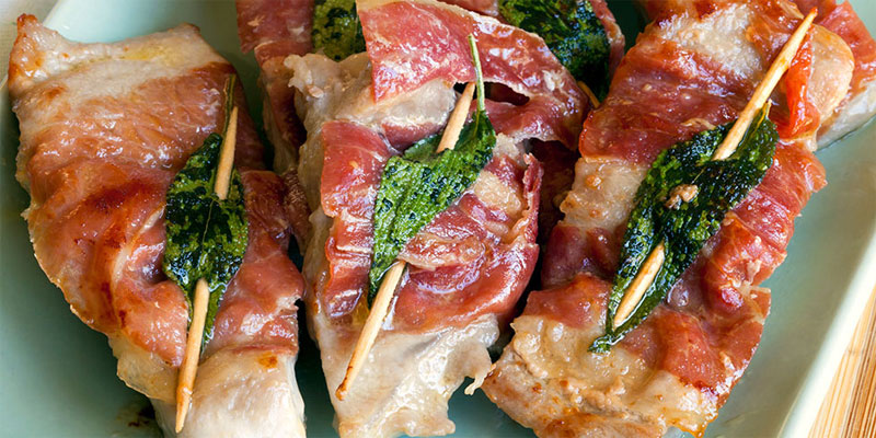 Saltimbocca, an Italian dish that is a specialty of Rome, is made by browning slices of veal and ham and then cooking them in an anchovy sauce. Despite its spelling, saltimbocca does not derive its name from being especially salty. Rather, it comes from three Italian words—saltare, in, and bocca—which, strung together, literally mean to leap in the mouth. The name whimsically suggests the lively taste of the dish, but—like the slogan “finger lickin’ good”—retains its charm only if the dinner guest does not visualize the image too vividly. Close relatives of saltimbocca included two non-culinary words: assault and somersault. Like the Italian saltare, these words derive from the Latin saltare, meaning to jump repeatedly. A mugger assaults a victim by jumping out of nowhere, and a gymnast performs a somersault by jumping into the air.