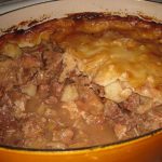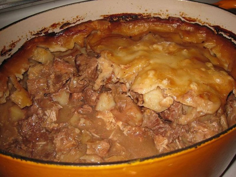 Made by alternating layers of meat, fish, and vegetables with layers of broken biscuits, the dish known as sea-pie does not really have anything to do with the sea or with pie. Rather, the name originated in the mid eighteenth century when the English heard, and then attempted to spell, the French word dpaille, a word pronounced like sea-pie and referring to a similar layered dish. In turn, this French dish may have derived its name from the Latin caepa, meaning onion, because, like an onion, it is made of many layers; alternatively, the French name may have originated as six-pates, pronounced see-pat and meaning six-pastry, a name suggesting the number of layers in the dish.