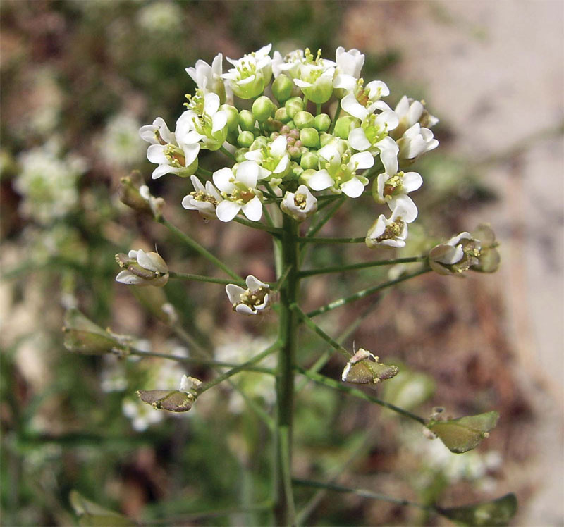 A member of the mustard family with heart-shaped seed pods.