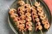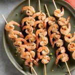 A metallic rod intended for skewering cubes of meat and frequently whole vegetables for the purpose of grilling over an open flame or broiling in an oven. Alternatively, the rod may be inserted through the food itself for cooking purposes.
