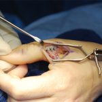 A sprain of the ligament that is attached to the joint of the thumb and controls the bending and straightening motions as well as side-to-side movements of the thumb. Skien’s thumb results in instability of the thumb and a loss of function. There may be pain and swelling in the area. The ability to bring together the ends of the thumb and forefinger may be limited. X rays may indicate a complete rupture of the ligament. If the thumb joint is sufficiently stable, a thumb cast or brace may be worn for 3 to 6 weeks to immobilize the joint and allow healing. If the ligament is completely ruptured, surgery is usually necessary to reconnect the torn ends of the ligament.