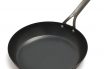 A skillet differs from a frying pan in that it has an especially long handle, and may even have legs that hold the bottom of the pan slightly above the heat source. The name of this utensil derives from a Latin word that has undergone double diminution: the Latin scutra, meaning tray, gave rise to the diminutive scutella, meaning little tray. Scutella then developed into the French word escuele, meaning pan, which gave rise to another diminutive: escuelette, meaning little pan. It was this French word that entered English at the beginning of the fifteenth century as skelet before developing the current spelling skillet.