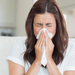 Involuntary sudden expulsion of air through the nose and mouth, resulting from irritation of the mucous membrane of the upper respiratory tract, as from a cold or allergic reaction.