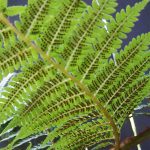 A cluster of spore-bearing sacs (sporangia) on the underside of a fern leaf.