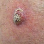 Skin SCC typically begins as a small, non-painful bump or patch, often appearing on the lip, ear, or back of the hand. It tends to grow relatively quickly and may look like a wart or ulcer. The cancer can also develop from an existing condition known as solar keratosis, which is characterized by rough or thickened skin patches. If not addressed, the cancer has the potential to metastasize to other areas of the body and become life-threatening.