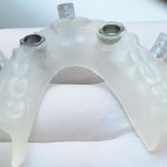 A drilling guide generated via computer‐aided manufacturing (CAM), according to information derived from software‐based planning, used for dental implant placement in vivo.
