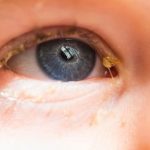 An indication of the eye condition conjunctivitis, where the eyelids adhere together due to the presence of discharge.