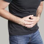 Pain in the abdomen or stomach, caused by eating too much food or by an infection.