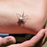 Perception of being touched or of something being under one’s skin, such as the sensation of pins being stuck into one’s finger. The sensation of something crawling under one’s skin is called formication; it occurs most frequently in alcohol withdrawal syndrome and in cocaine withdrawal.