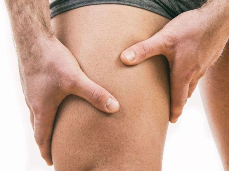 The proximal portion of the lower extremity; the portion lying between the hip joint and the knee.