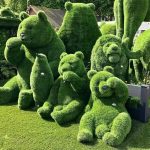 The art of clipping suitable trees or shrubs such as yew, privet or box into artificial shapes, such as pyramids, globes, peacocks, etc.