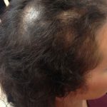 The twirling or plucking at segments of hair resulting in trauma to the hair follicles causing patches of baldness.