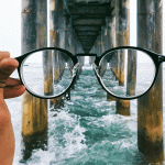Glasses with three different corrections in each lens: one each for near, intermediate, and far vision.