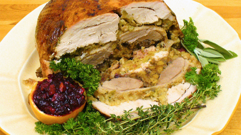 If ever there were evidence as to why the world needs more poets, it can be found in one word: turducken. No poet, nor anyone sensitive to language, would allow anything edible to be given such a name. It’s bad enough that the word in its entirety sounds hideous; it’s worse that its first syllable is turd. On the other hand, perhaps such a cacophonous (and coprophagic) name is apropos for a food item as baroque as turducken: a boneless chicken is stuffed with reddish sausage stuffing; then the chicken is stuffed into a boneless duck along with yellowish cornbread stuffing; then the chicken and duck are stuffed into a boneless turkey with greenish oyster stuffing. After the monstrosity is cooked for twelve hours, it’s sliced open to reveal concentric circles of variously coloured flesh and stuffing, somewhat reminiscent of a tree ring. As a food, turducken traces its lineage back to nineteenth-century Cajun cuisine, though it was only in the early 1980s that renowned chef Paul Prudhomme introduced it to a wider audience of gastronomes. It was also around that time that the dish came to be known as turducken, a word that obviously combines various syllables from turkey, duck, and chicken. Later, in 1997, millions of hapless Americans were exposed to turducken when football commentator John Madden tore into one during the half-time of a Thanksgiving Day football game.