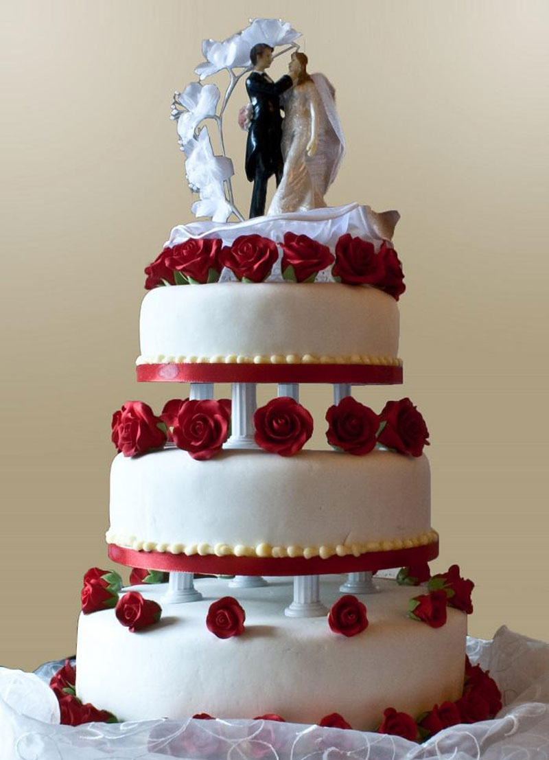 A time-honored centerpiece at wedding receptions, the traditional rich fruitcake takes center stage, boasting one, two, or even multiple tiers. Adorned with a luscious layer of almond paste and intricately decorated with royal icing, this exquisite confection serves as a symbol of joyous matrimony. Traditionally, the bride initiates the ceremonial first cut, while the subsequent division of the cake is often performed behind the scenes. It is customary to preserve the top tier of the wedding cake, as its sumptuous richness allows for long-lasting quality when carefully wrapped, thus reserving it for the momentous occasion of the first christening.