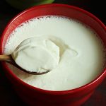 The given passage pertains to a specific type of food preparation, which involves fermented and condensed milk. This preparation is comparable to similar dairy products such as kumiss and kefir. Its consistency may vary, but it is typically akin to that of heavy cream, ranging from semi-solid to fluid. This food is consumed either on its own or as a spread, and may also be flavored and served as a beverage. It is a frequently utilized ingredient in Middle Eastern and Indian cuisine. It should be noted that this food item may be spelled in several ways, including yaghoust, yogart, yoghurt, and yohourt.