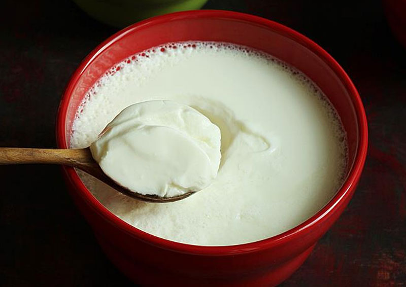 Sour milk curdled with one of the lactic acid producing bacilli, such as Lactobacillus acidophilus or Lactobacillus bulgaricus. It contains all the protein, fat, calcium, and vitamins of the original milk, and is therefore a nutritious food, but there is no evidence that it has any unique beneficial properties of its own. In countries where standards of hygiene are low, it has the advantage of having been sterilized by boiling and is therefore unlikely to be contaminated with dangerous micro-organisms.