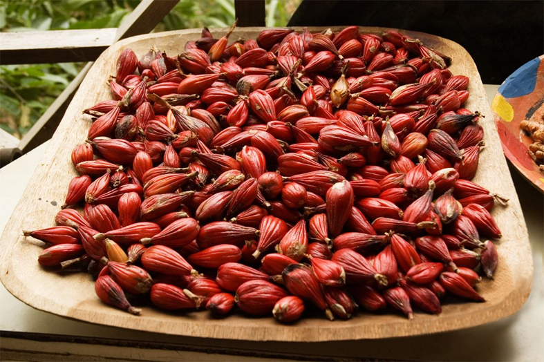 Grains of paradise are native to the coastal areas of Africa’s Gulf of Guinea which includes today’s countries of Liberia, Ivory Coast, Togo, Nigeria and Cameroon where grains of paradise have a long-standing record of ethno-botanical use. Before the spice trade routes from Western Europe to the East Indies were established, a lively trade of grains of paradise, cubeb and long peppers existed. Oceanic travels to the Spice Islands by the Portuguese, Dutch and English in the 17th century diminished the value and importance of grains of paradise in face of competition of black pepper, clove, mace and nutmeg.