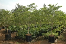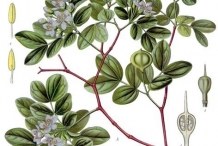The word Guaiacum was derived from Caribbian. Guaiacum is a slow growing, broad leaf and small tree which grows with trunk diameter of 60 cm and upto 12 m in height. The compound leaves are 2 cm wide and 2.5-3 cm long. Flowers are bluish purple, showy and 2.5 cm across with five petals that gives way to bright yellow to orange fruit. Fruit has red flesh with black seeds in it. The flower blooms from March to October.