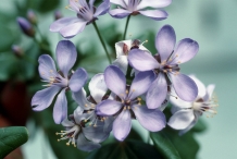 Flowers are pale blue of star shaped with 6-10 blooms and 2 cm long pedicles. It has 5 petals, 5 sepals and 10 stamens with bilocular ovary. Flowers appear in great profusion and remain for a long time covering the tree. When the older flowers fade from deep blue to paler becoming white then a striking variegation of color is produced. Flowers appear at the end of branches. Each flower has small and finely hairy calyx. There are 10 stamens with golden yellow anthers. Fruit is a bilocular and cordate capsule which is compressed on a side and contains long and hard seed.