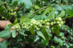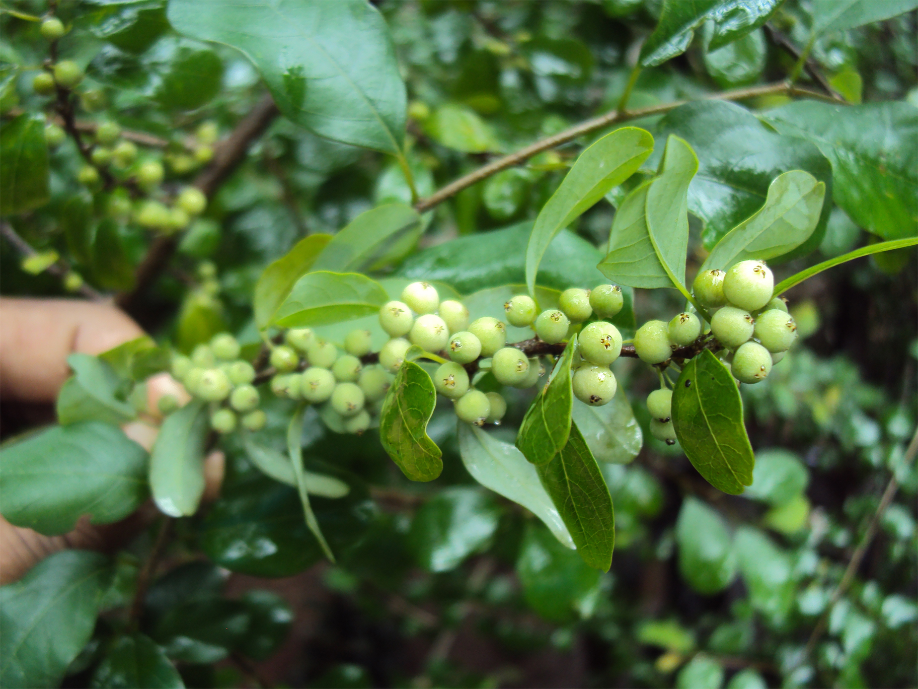 Being a slow growing plant, it requires from 8 to 10 years reaching to the height of 3 to 3.5 meters with thin paper bark and branches are thorny. Leaves are simple measuring 1 to 5 cm long and 0.5 to 2.5 cm broad. Plant is dimorphic, one with bisexual and male flower and other with female flower with staminodes. Fruits are green berry such drupe size of the fruit about 6 to 8 mm in diameter.