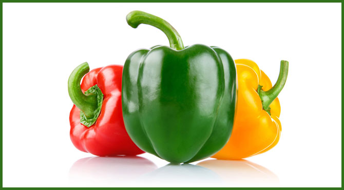 Bell pepper, also known as sweet pepper, is one of the most commonly used chili peppers in the Capsicum annuum family and is native to Mexico and northern Latin America. These are scientifically known as Capsicum annuum and belong to the category of nightshade (solanaceae) family of plants comprising of cayenne pepper, chili pepper, potatoes, tomatoes and eggplant.  Bell peppers are fruit pods on the capsicum plant grown for their subtle hotness yet sweet, delicate peppery flavor they extend to the recipes. Botanically, it is a small perennial shrub in the nightshade or Solanaceae family, in the genus, capsicum. Apart from bell pepper it Is also known as African Pepper, Capsicum Pepper, Bell Pepper, Cayenne, Cayenne Pepper, Chili, Cherry Pepper, Chili Pepper, Chili, Chilly Pepper, Chitlepin, Christmas Pepper, Cone Pepper, Green Capsicum, Green Pepper, Halapenos, Hungarian Pepper, Jalapeno Pepper, Long Pepper and many more. Bell peppers are consumed as vegetables, either raw or cooked. Just like their close relatives, the chili peppers, bell peppers are sometimes dried and powdered. In that case they are referred to as paprika. They are low in calories and exceptionally rich in vitamin C and other antioxidants, making them an excellent addition to a healthy diet.