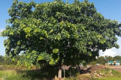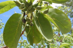 A slender and spreading tree which reaches 10 meters high with rough cream-grey bark i.e. flaky in larger trees. Leaves are light green, leathery, glabrous, broadly elliptical to ovate about 15-22 cm long by 12-20 cm wide with distinct veins and spirally arranged towards the end of branches. Flowers are small creamy white and perfumed borne on spikes 20 cm long in leaf axils. Fruit is fleshy and void with short beaked about 2 cm long by 1 cm wide, yellow-green with reddish tint and contains one large seed. The flower blooms at the end of dry season from September to November.