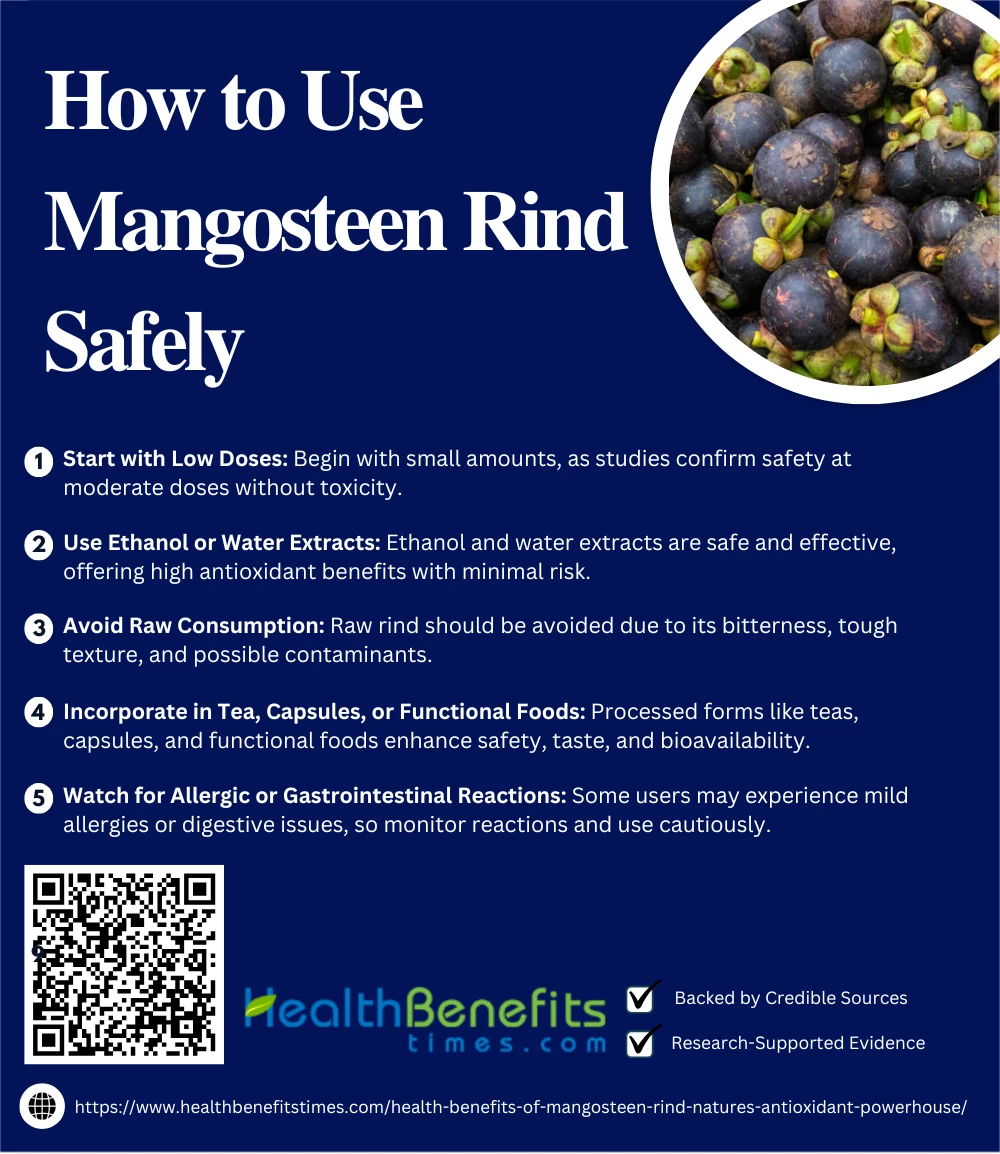 Using mangosteen rind safely involves proper preparation methods like drying, powdering, or brewing as tea. Recommended dosages, potential side effects, and consultation with healthcare providers are essential for safe use.