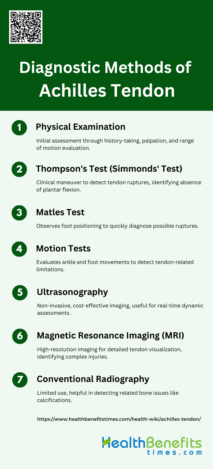 Diagnosing Achilles tendon injuries requires a combination of clinical assessments and imaging techniques to ensure accurate identification and effective treatment. These methods help in evaluating the extent of injury, determining the appropriate intervention, and monitoring recovery progress. Below are the key diagnostic methods used for assessing the Achilles tendon.