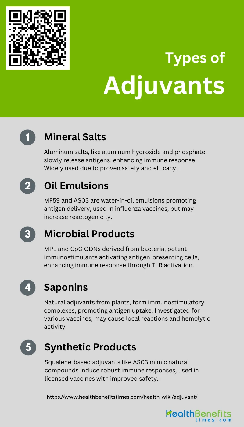 Below is a list of various types of adjuvants that are commonly used in vaccine development.