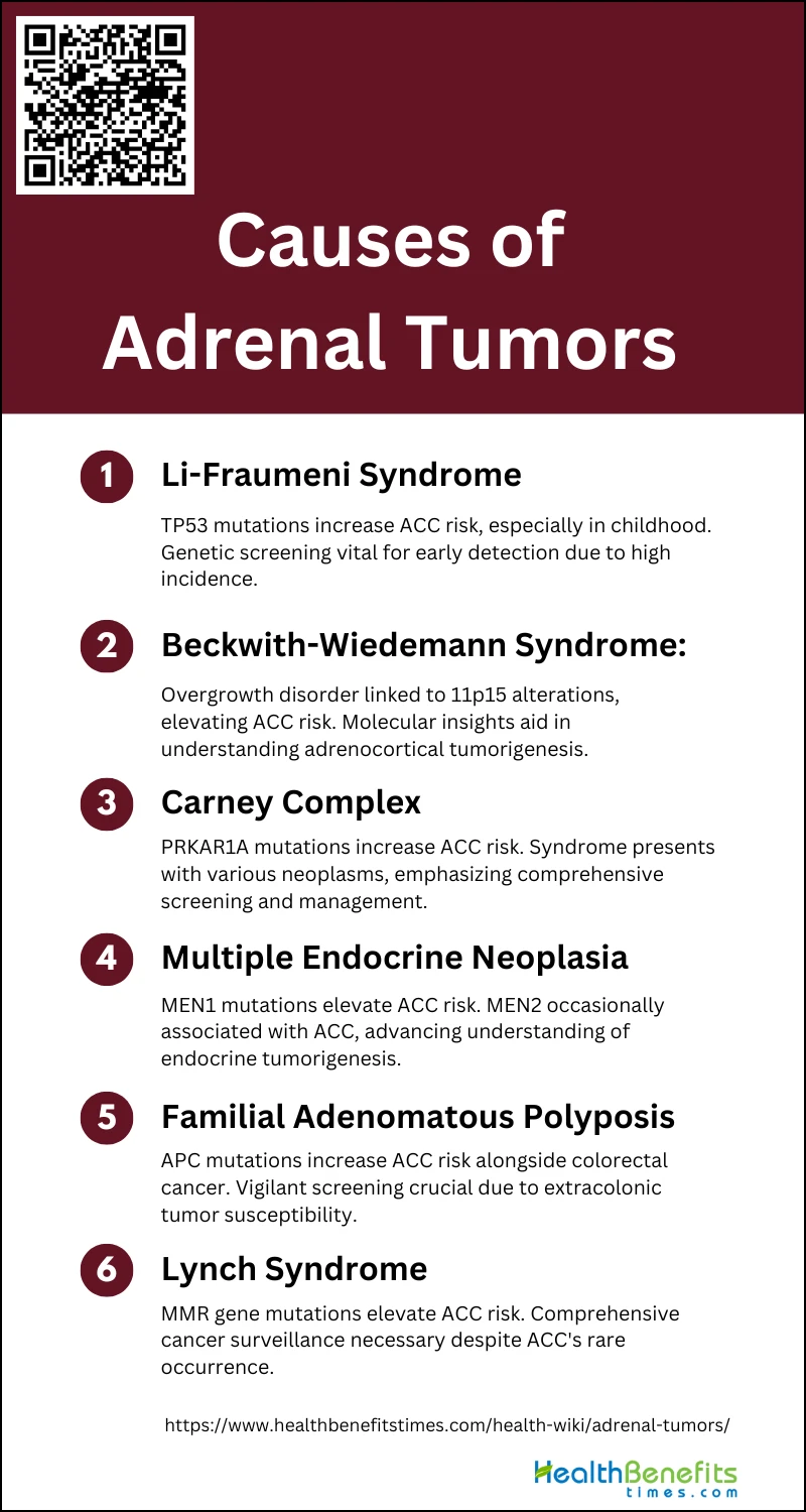 Understanding the underlying causes and risk factors is crucial for early detection and effective management of these tumors. Below is a list of Causes and Risk Factors of Adrenal Tumors: