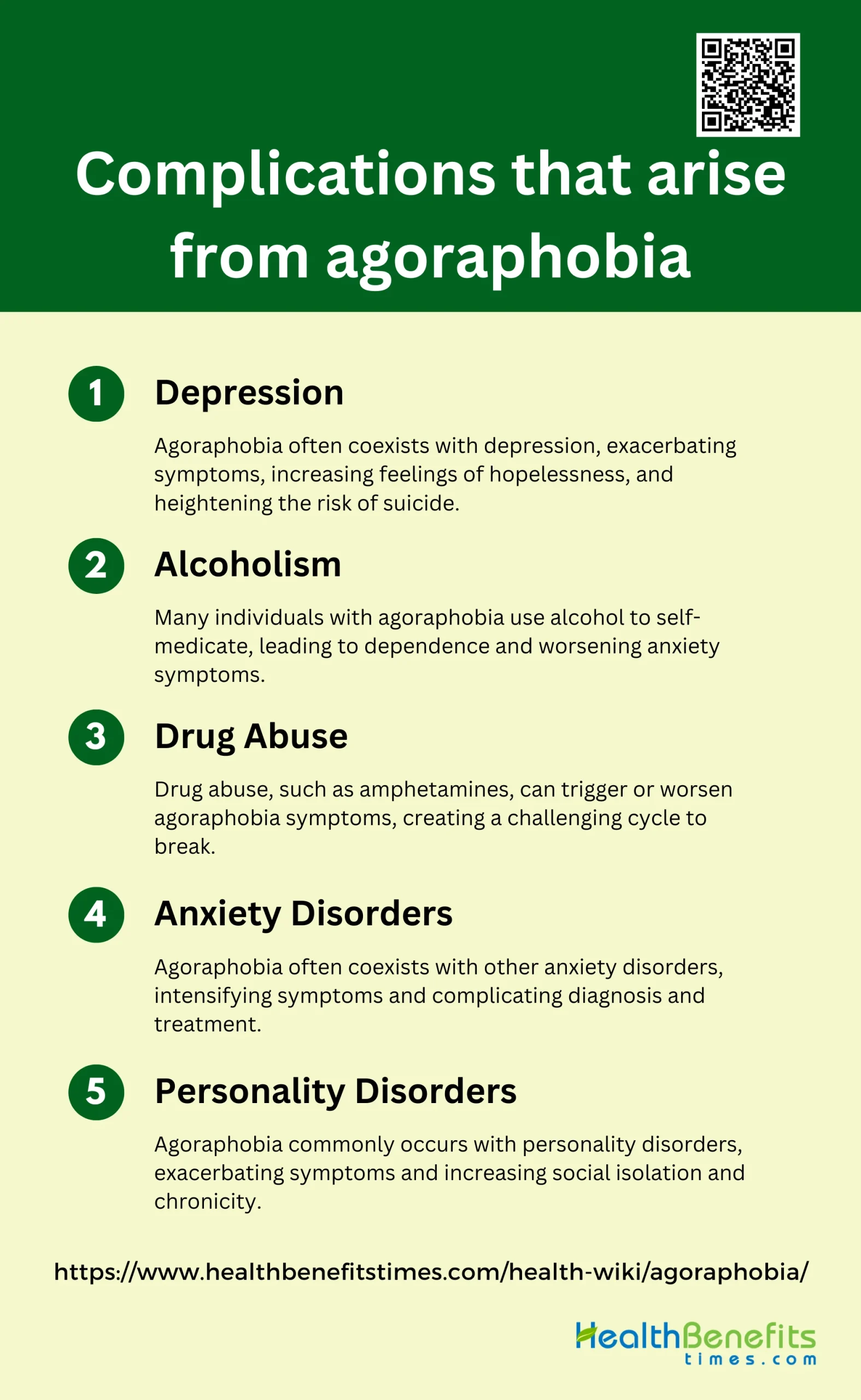 Individuals with agoraphobia may experience a debilitating fear of situations where escape is difficult or help might not be available, leading to avoidance behaviors that significantly impact daily functioning. Here are some of the key complications that arise from living with agoraphobia: