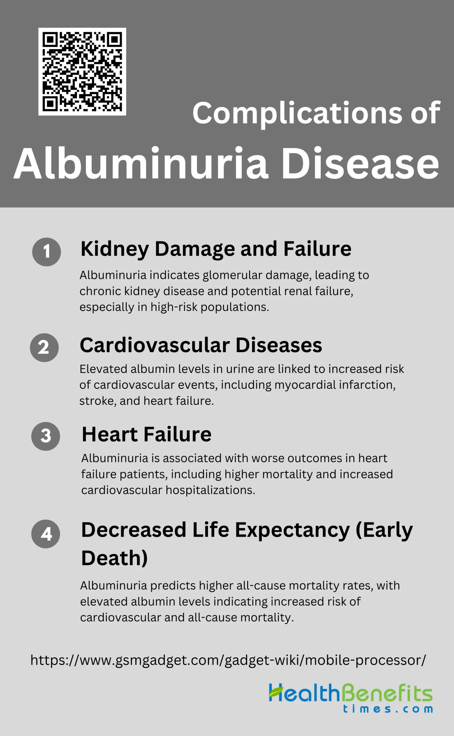Albuminuria can lead to various complications if left untreated. Here are the key complications associated with the disease: