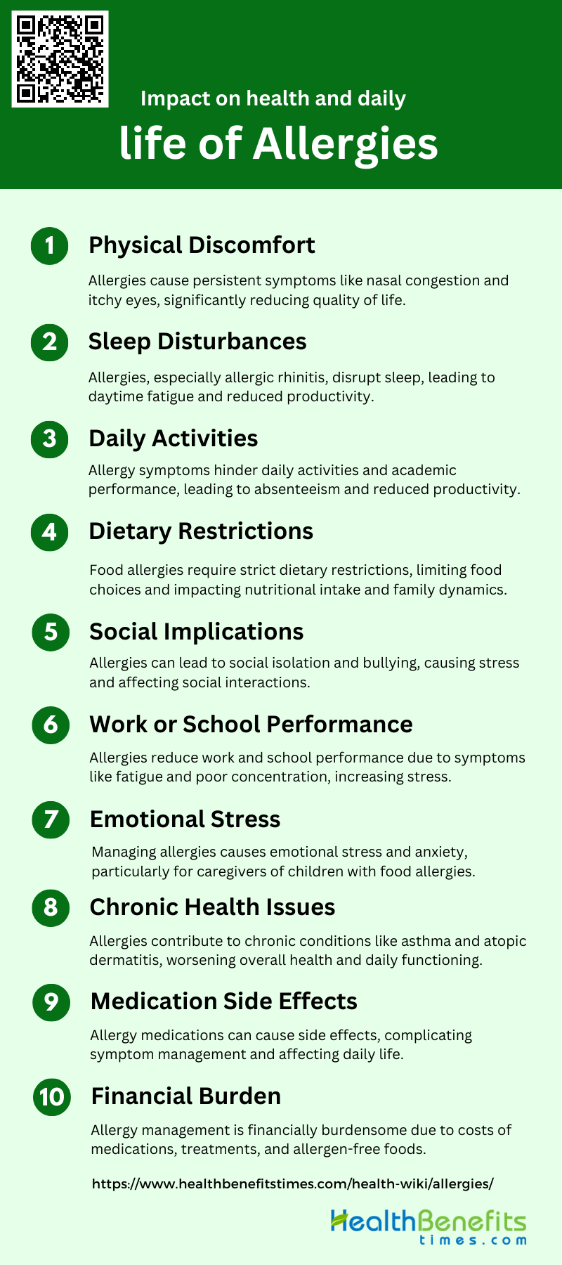 It can significantly affect both health and daily life, leading to a range of symptoms from mild discomfort to severe reactions. These conditions can disrupt normal activities, reduce productivity, and impact overall well-being. Here are some key ways allergies can influence daily life: