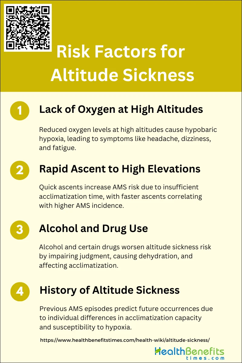 These factors include the rate of ascent, altitude reached, and individual susceptibility. Understanding these risk factors can help in planning and taking preventive measures. Key risk factors include: