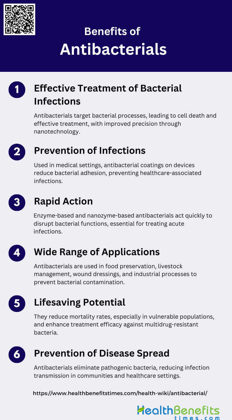 Antibacterials offer numerous benefits by effectively controlling and eliminating harmful bacteria. They are essential in both healthcare and everyday life for preventing infections and maintaining hygiene. Below are some key benefits of antibacterials: