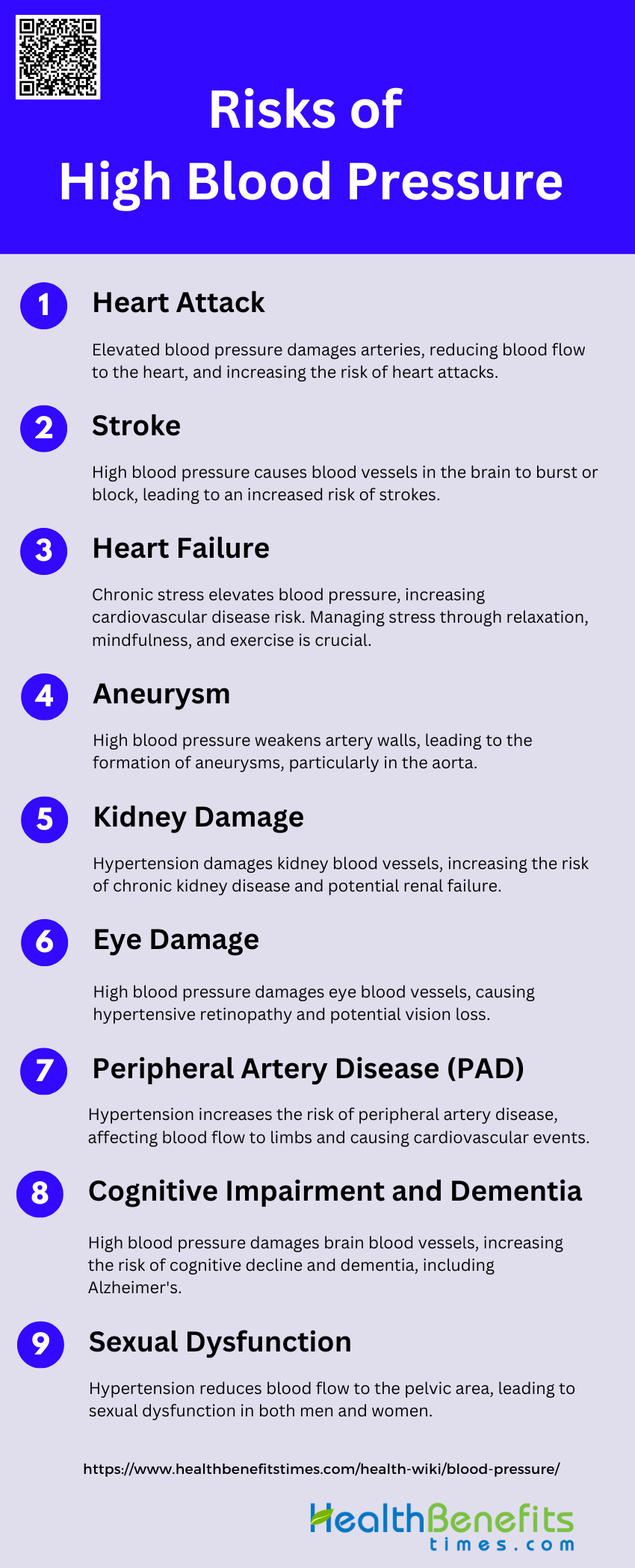 High blood pressure can lead to sexual dysfunction in both men and women. It can cause reduced blood flow to the pelvic area, affecting sexual function. Hypertension is known to be associated with various forms of sexual dysfunction, and managing BP can help improve sexual health. Therefore, controlling BP is important for maintaining sexual function.