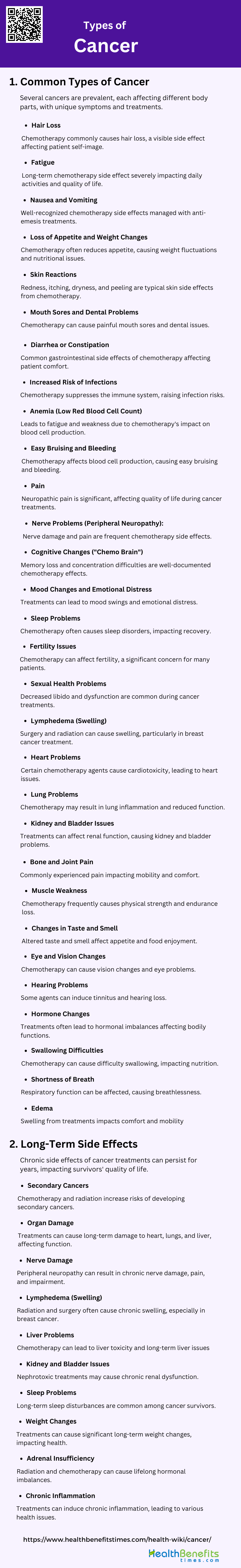 - Organ Damage: Chemotherapy and radiation can cause long-term damage to organs such as the heart, lungs, and liver, affecting their function.