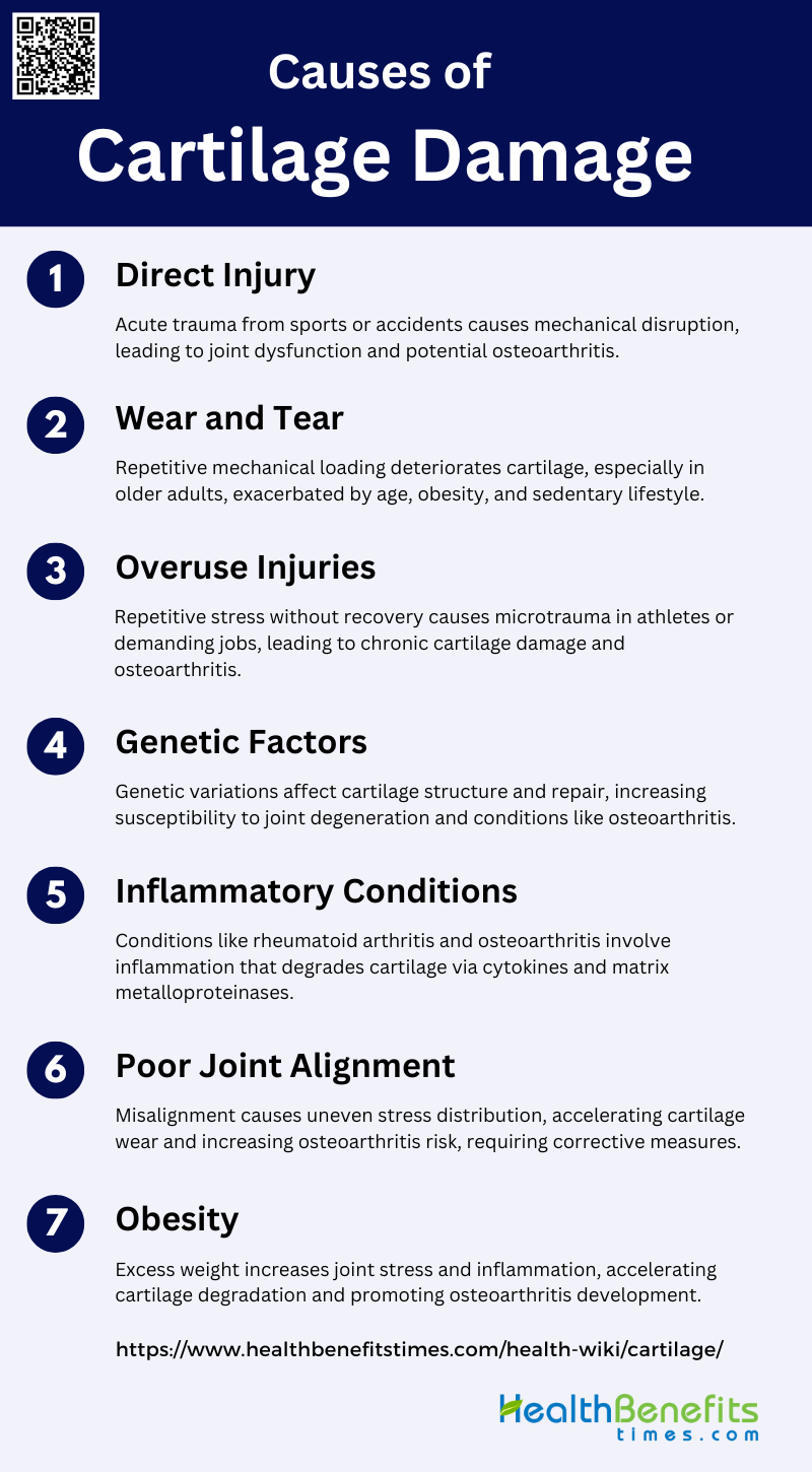 Cartilage damage can occur due to various factors, impacting joint function and overall mobility. Common causes include physical trauma, repetitive stress, and degenerative conditions like osteoarthritis. Below is a list of the primary causes of cartilage damage:
