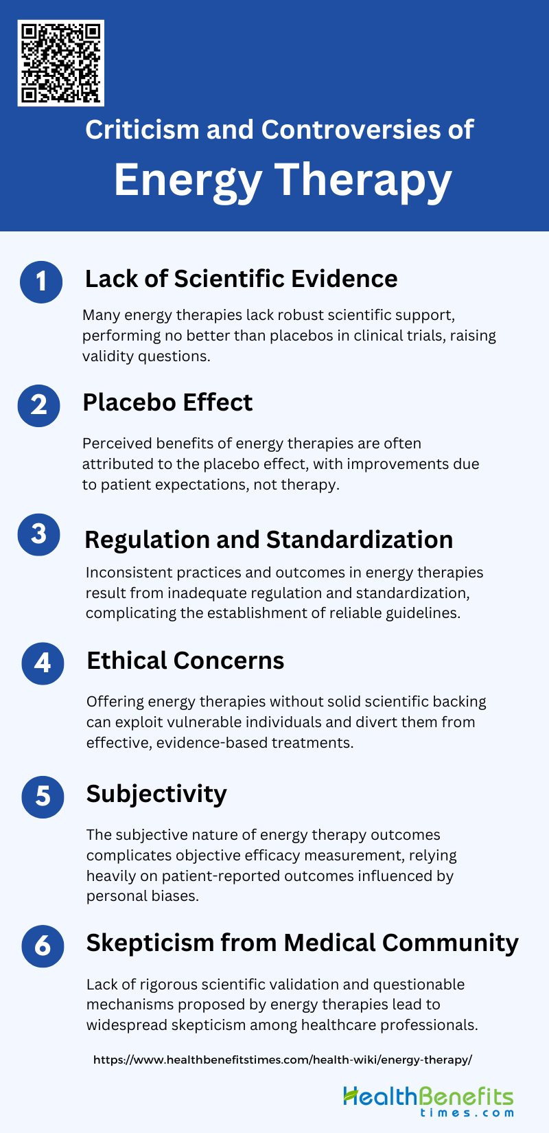 Energy therapy, often referred to as energy healing, has faced several criticisms and controversies over the years. Here are some key points: