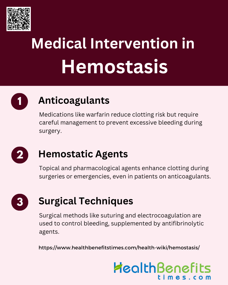 Medical interventions in hemostasis are crucial for managing bleeding and clotting disorders, ensuring patient safety during surgeries, and treating emergencies. These interventions encompass a range of strategies and products designed to either inhibit or promote clot formation as needed. Key medical interventions in hemostasis include:
