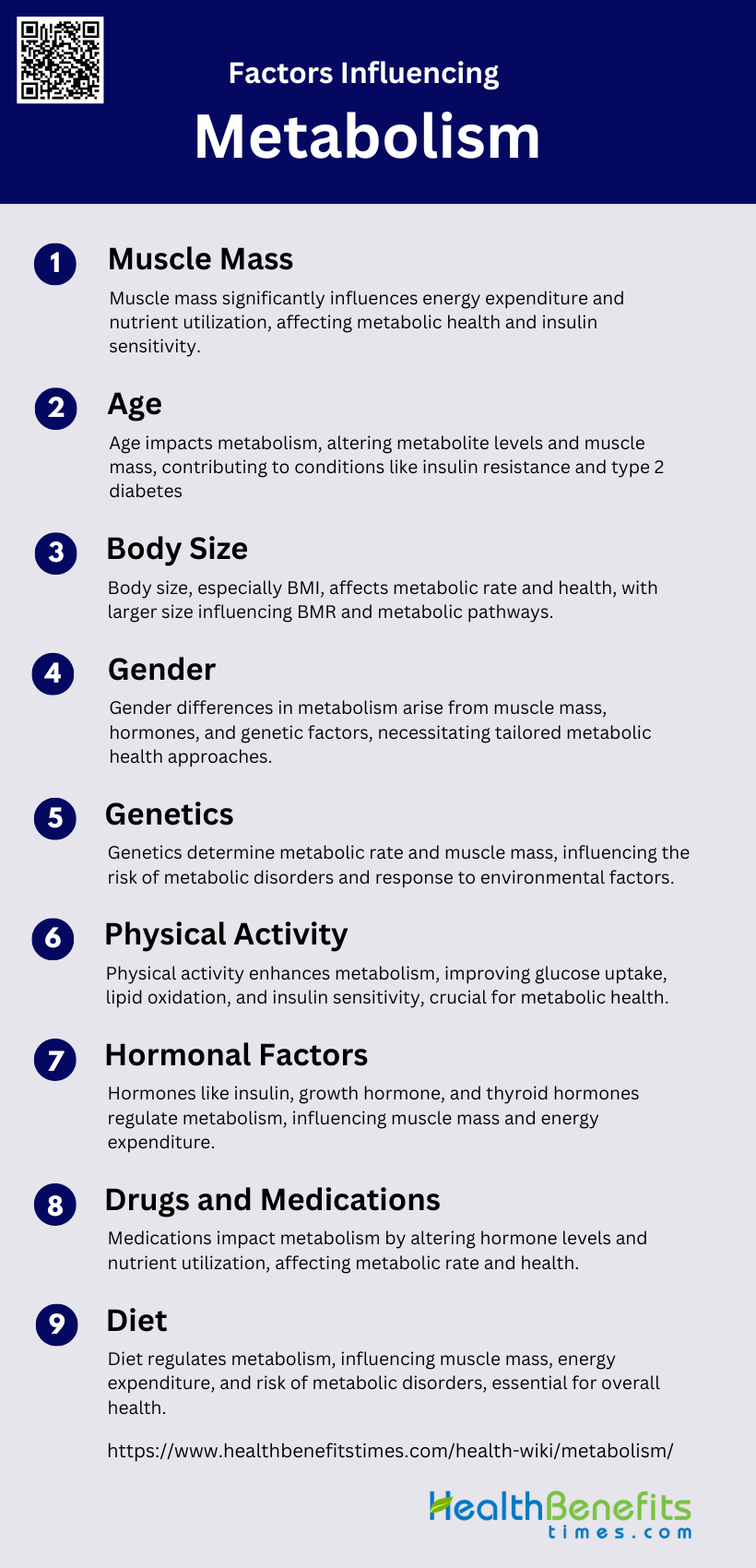 Metabolism is influenced by various factors that determine the rate at which the body converts food into energy. These factors include genetics, age, physical activity, and diet. Below are some key factors that influence metabolism: