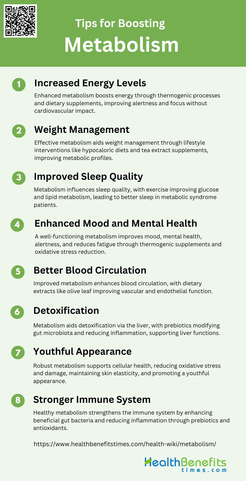 Metabolism plays a crucial role in maintaining overall health and well-being by converting food into energy and supporting bodily functions. An efficient metabolism can enhance energy levels, aid in weight management, and improve cellular repair. Below are some key benefits of metabolism:
