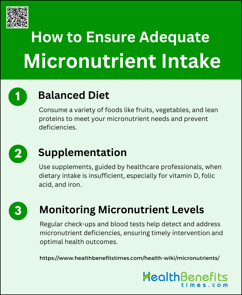 Ensuring adequate micronutrient intake is crucial for maintaining optimal health and preventing deficiencies. A balanced diet rich in diverse foods can help meet your nutritional needs. Below are some strategies to ensure you get enough micronutrients: