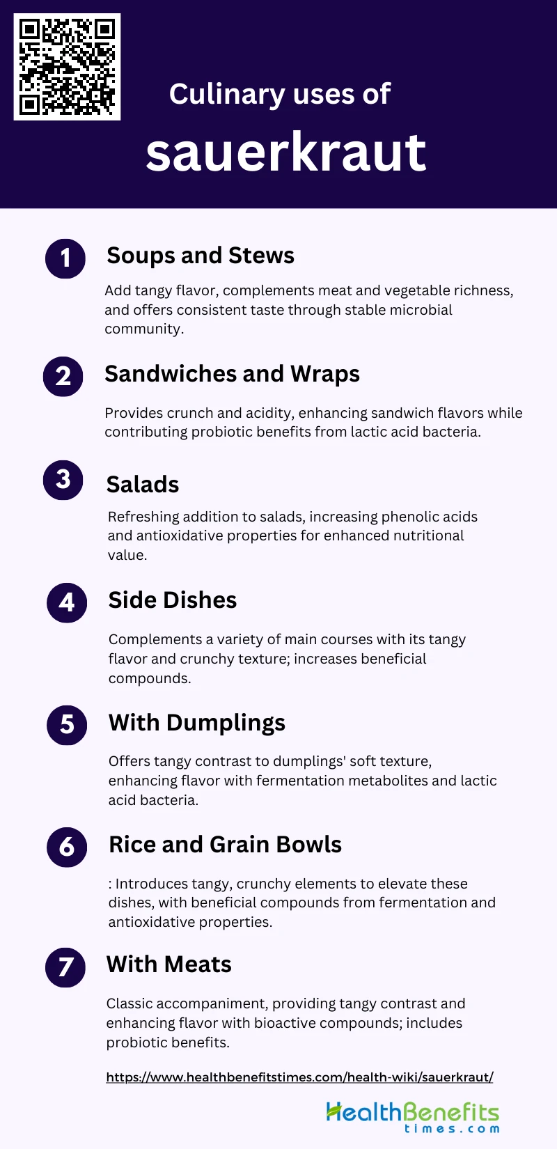 It can be used in a variety of dishes, adding a unique taste and texture. Here are some popular culinary uses of sauerkraut: