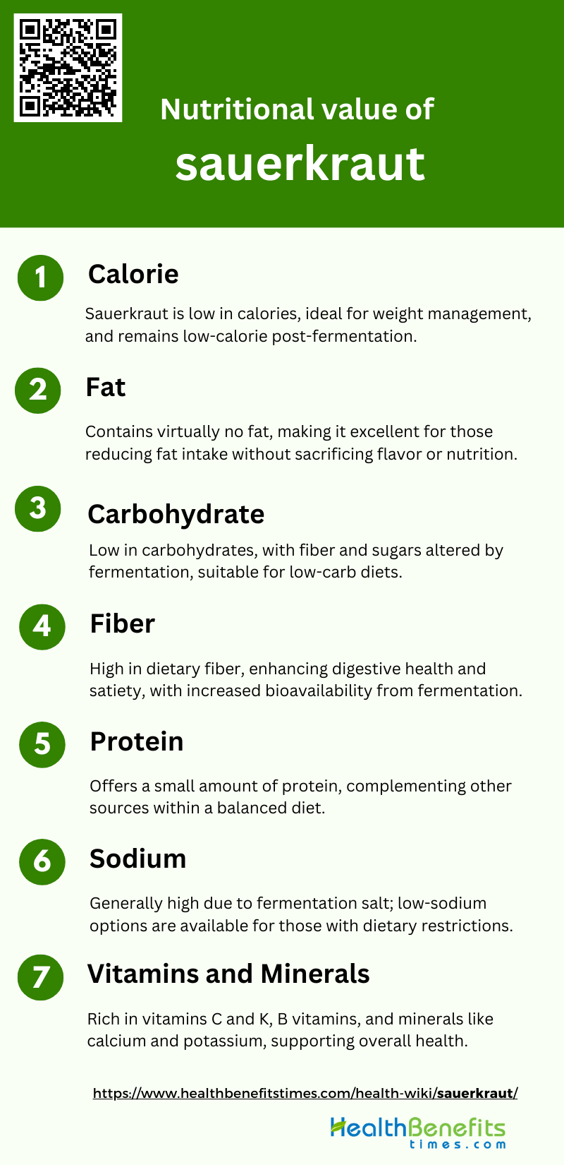 It is rich in essential nutrients and probiotics that support gut health and boost the immune system. Below are some key nutritional components found in sauerkraut:
