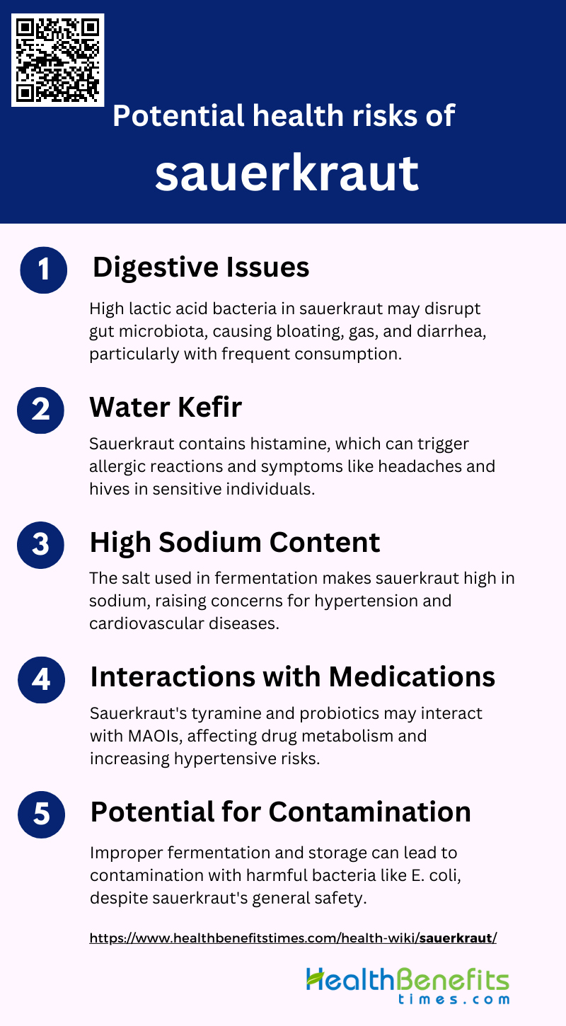 While sauerkraut is known for its health benefits, it is important to be aware of some potential health risks associated with its consumption. These risks can vary depending on individual health conditions and the amount consumed. Here are some potential health risks of sauerkraut: