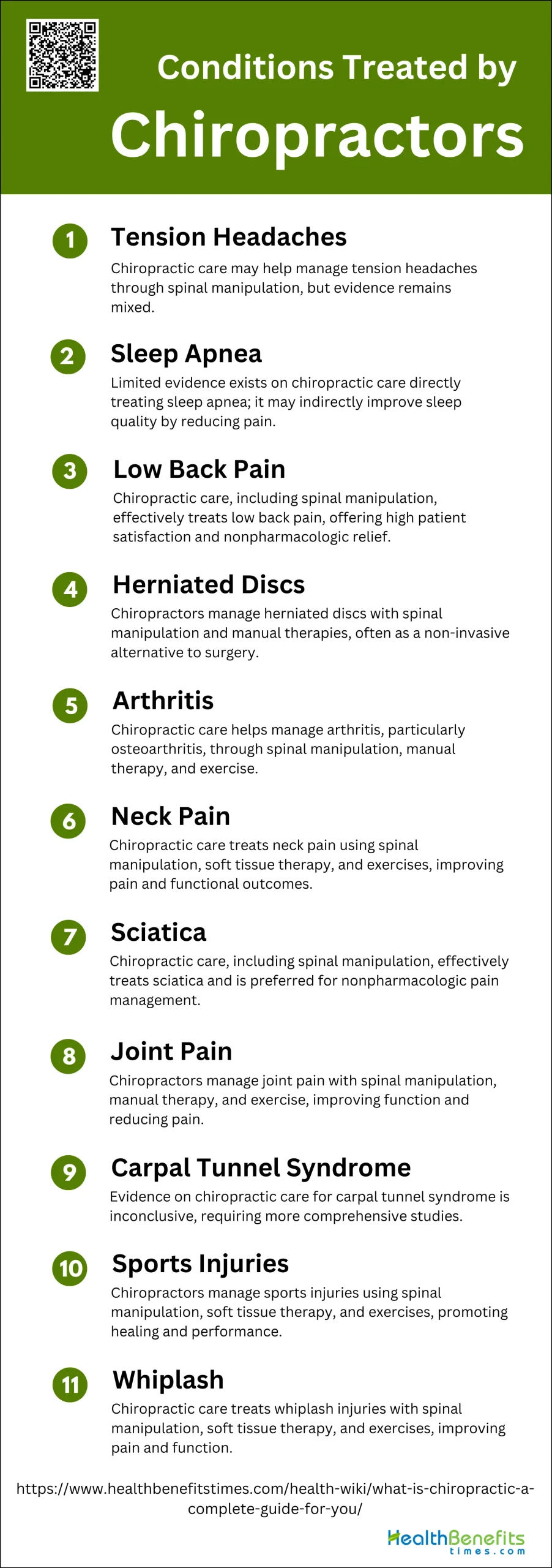 Chiropractors treat a variety of conditions, primarily focusing on issues related to the musculoskeletal system. Here is some common Conditions Treated by Chiropractors: