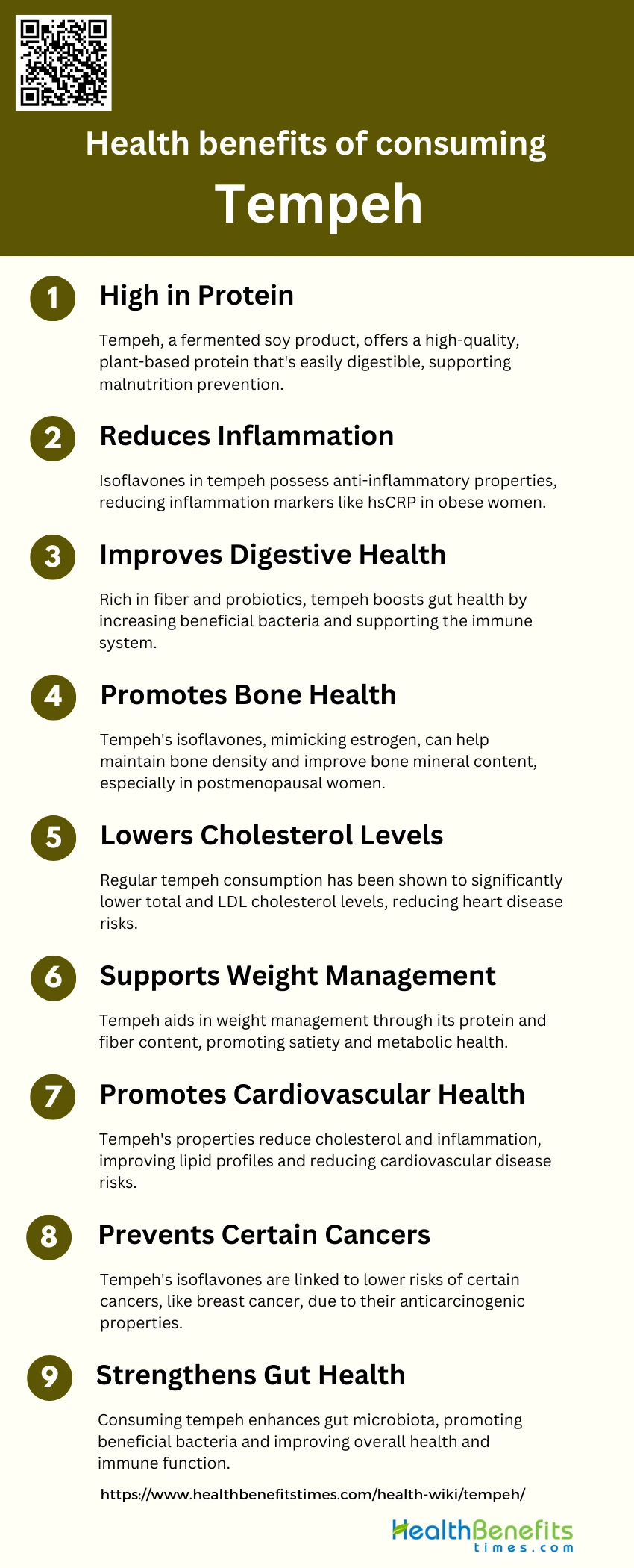 Studies have shown that consuming tempeh can reduce levels of high sensitivity C-reactive protein (hsCRP), a marker of inflammation, in obese women. This reduction in inflammation can help lower the risk of chronic diseases associated with obesity and inflammation.