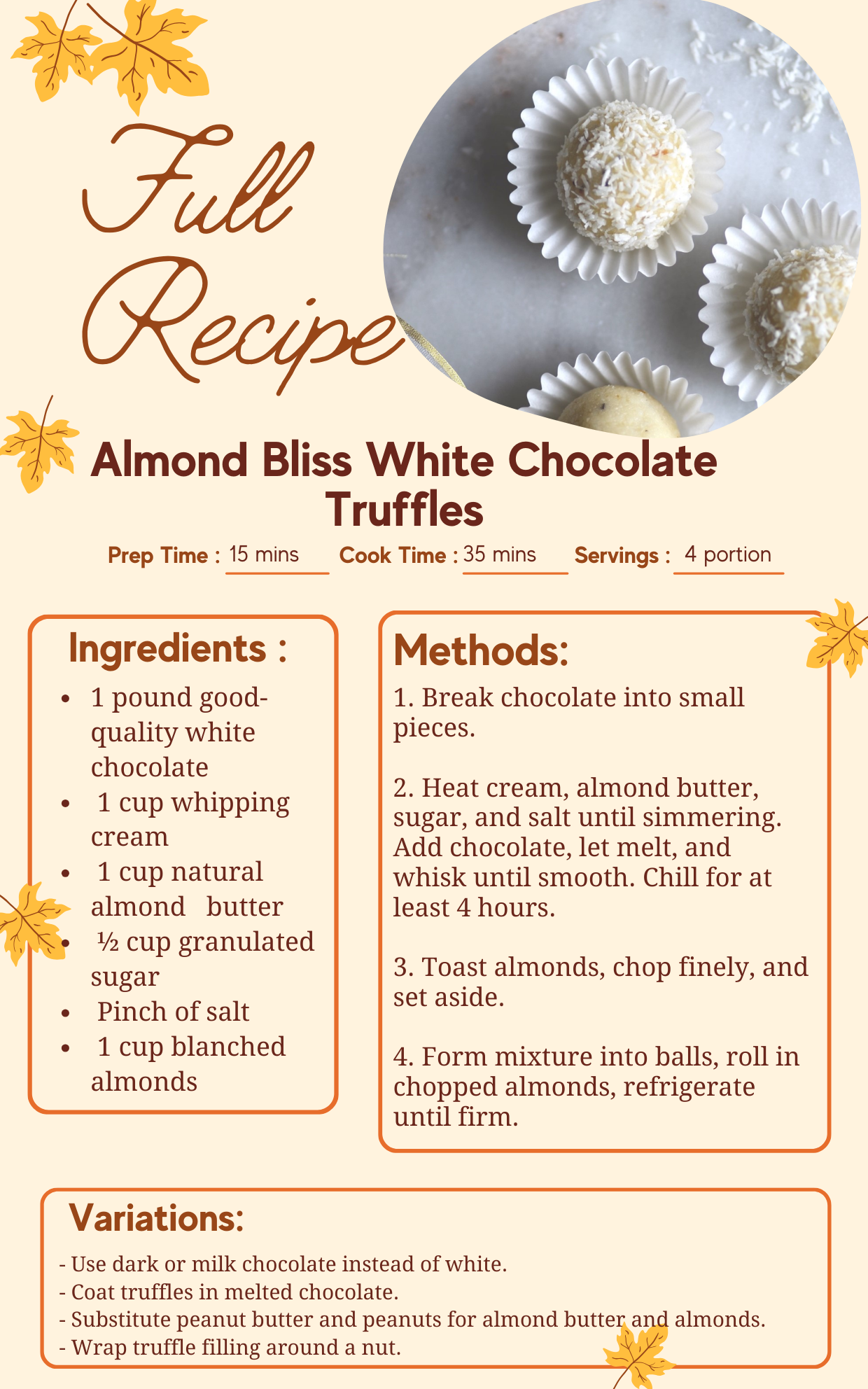 Keywords: How to make Almond Bliss White Chocolate Truffles, Recipe of Almond Bliss White Chocolate Truffles